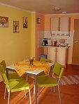 Apartmány jsou vybaveny předsíňkou, kuchyňkou, jídelním koutem, lednicí, rychlovarnou konvicí, mikrovlnou troubou, TV, soc. zařízením. Stravování vám zajistíme formou polopenze nebo si můžete vybrat sami z obsáhlé nabídky jídelního lístku.